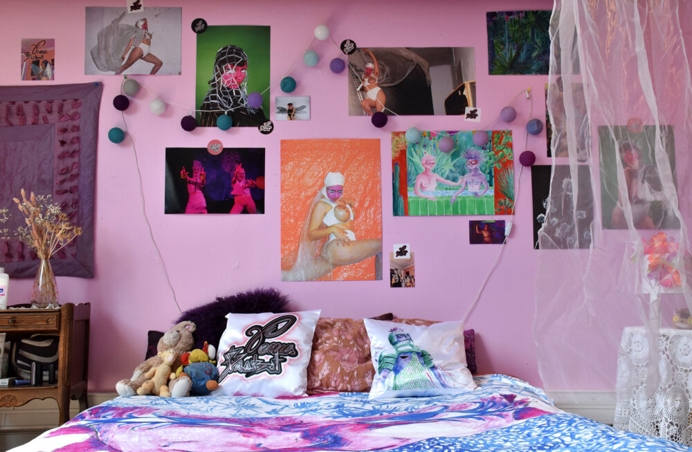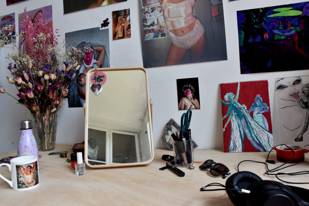 Scarlett est présidente du fan club de Venus Basket. Sa chambre, son sanctuaire, est un temple dédié à son idole. Lors de l’exposition Here and Now, à la Haute Ecole des Arts du Rhin, elle nous a révélé exceptionnellement cet espace où s’amoncelle des objets en tout genre, des produits dérivés de fan aux pièces de collection.